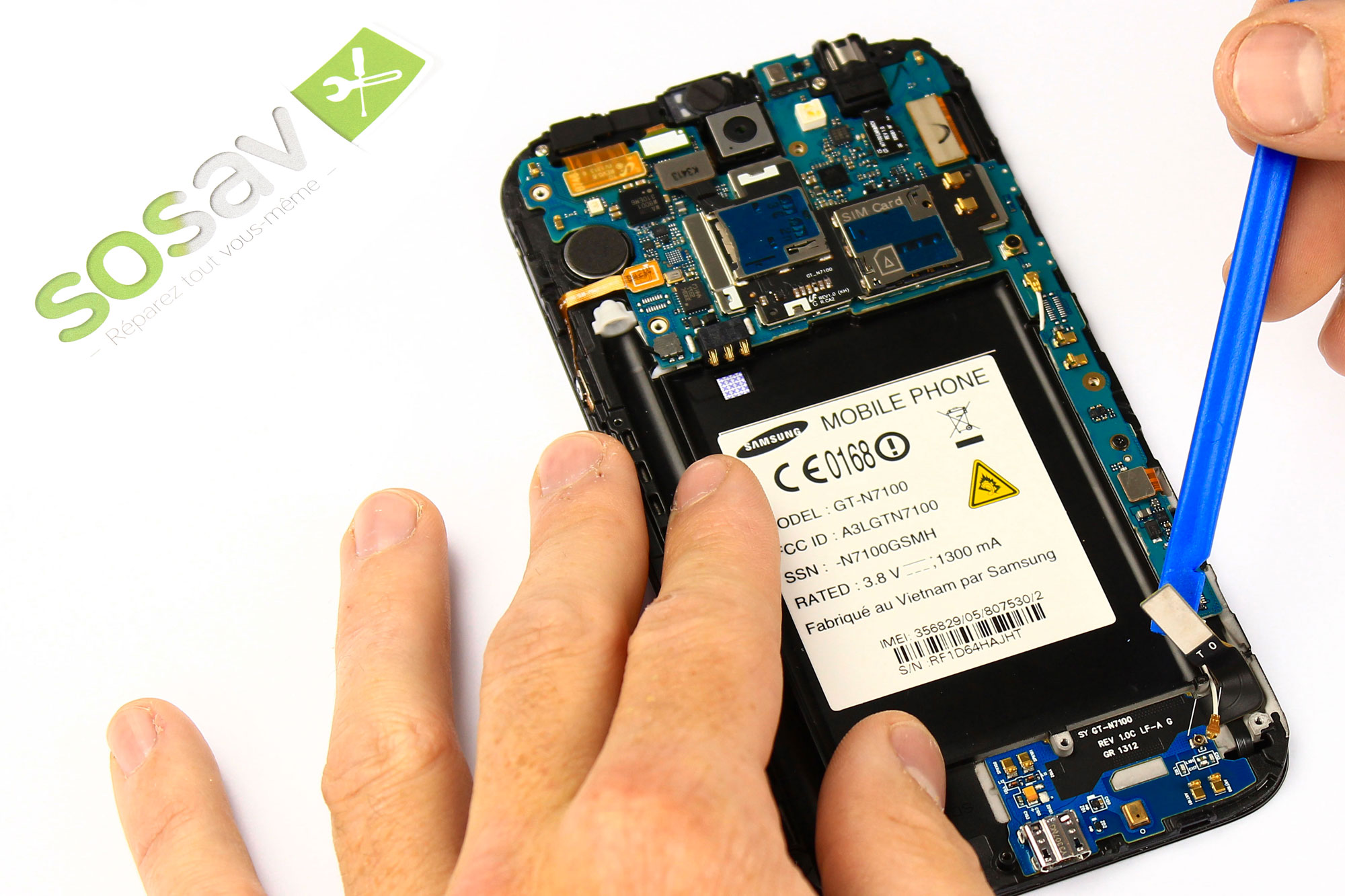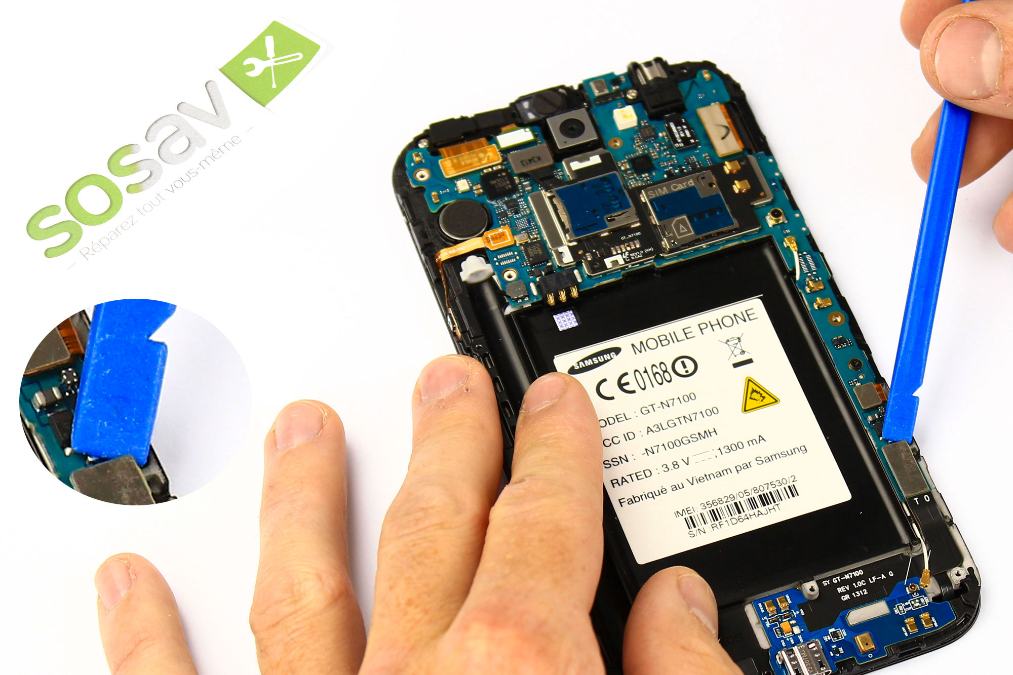 Une fois soulevée, vous pouvez ôter complètement la batterie du Galaxy Note 2.