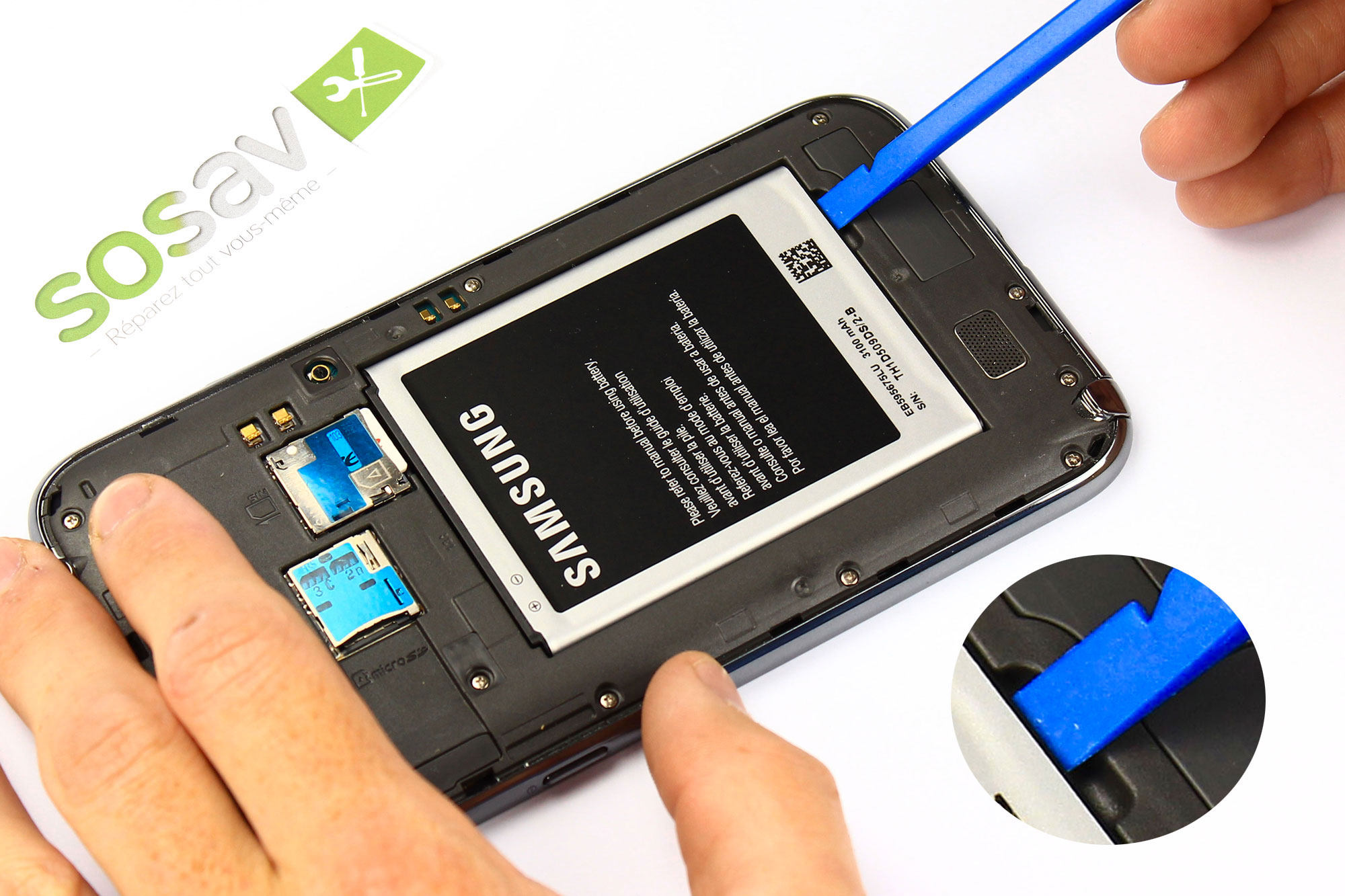 Une fois soulevée, vous pouvez ôter complètement la batterie du Galaxy Note 2.