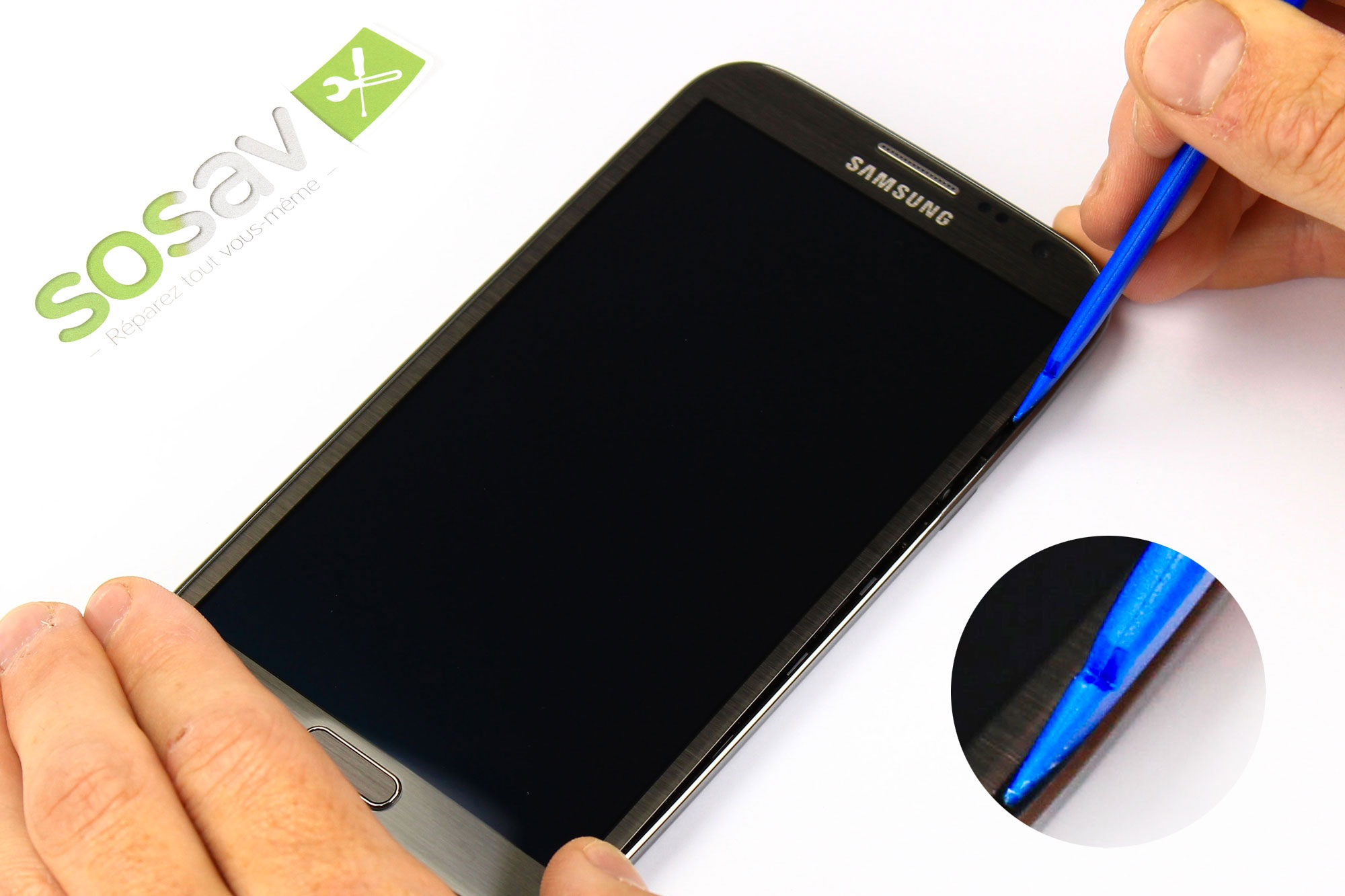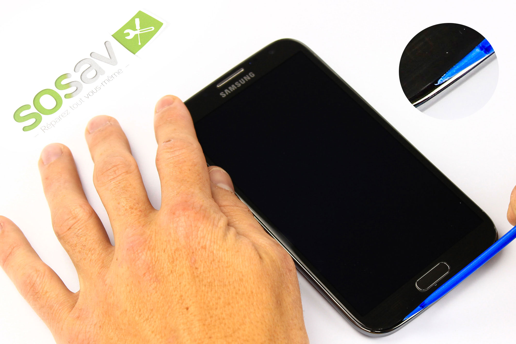 Puis faites la glisser sur les 4 côtés de votre Galaxy Note 2 afin de déclipser le bloc LCD du châssis.