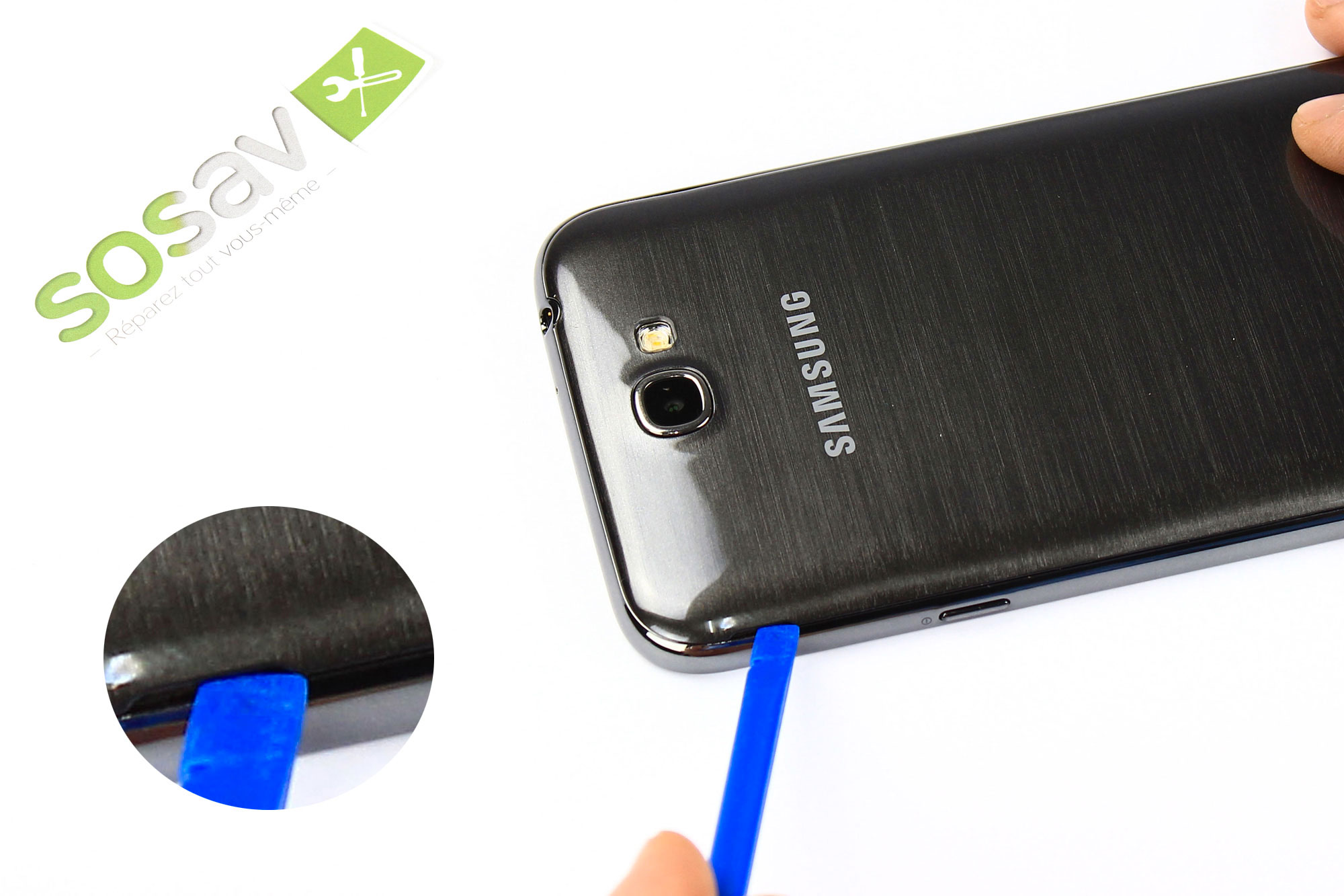 Faites glisser une spatule en nylon afin de soulever la coque arrière du Galaxy Note 2 .