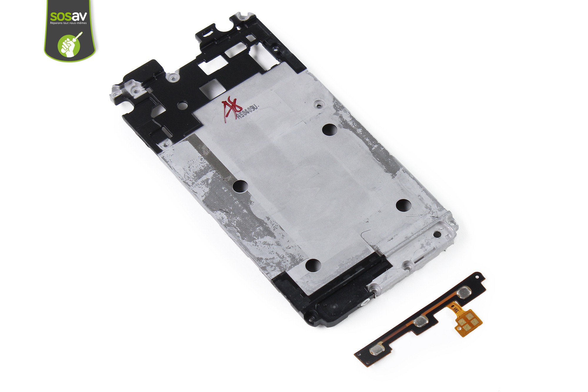 Repoussez délicatement le châssis écran par le côté logement batterie du téléphone puis procédez à son retrait.